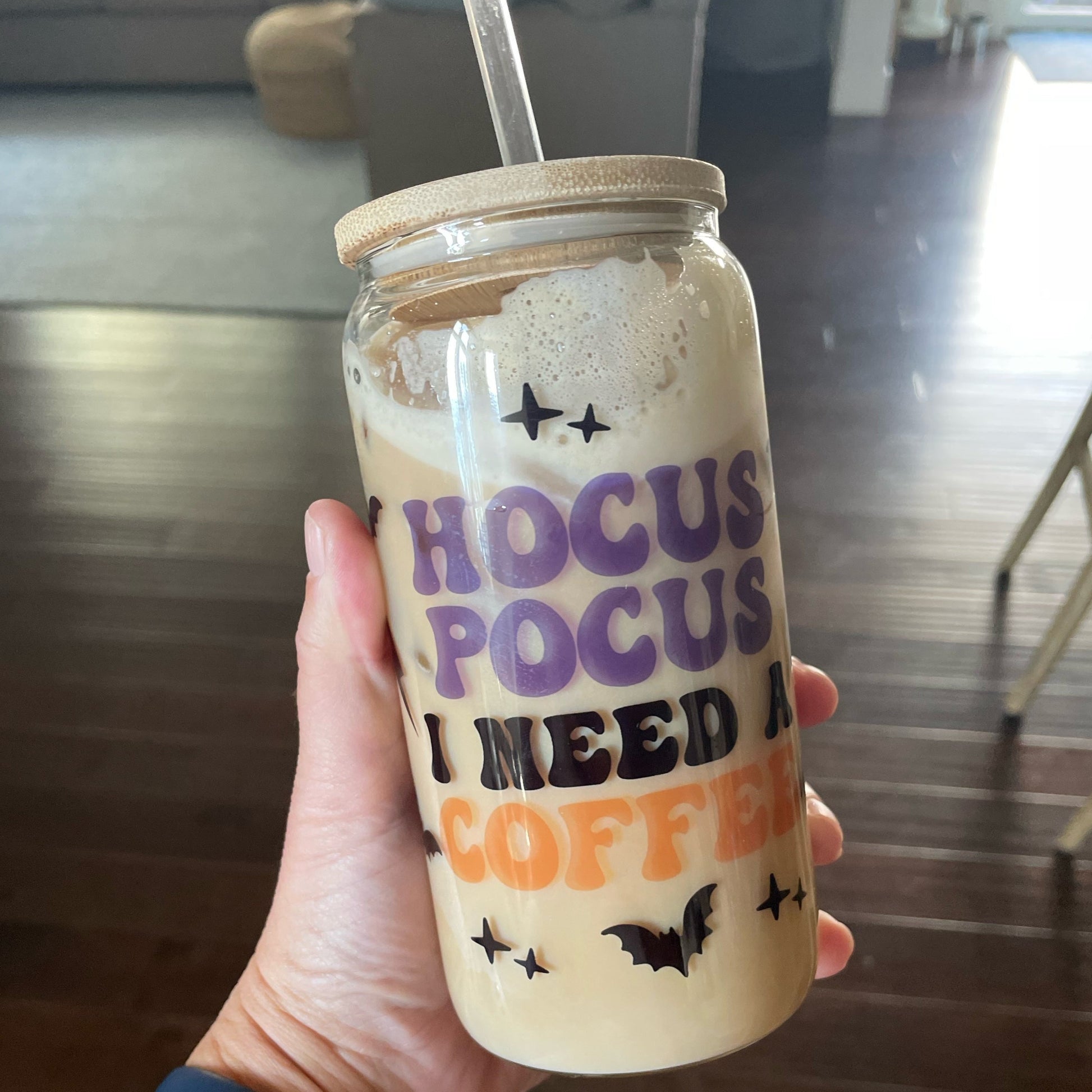 16oz beer can glass with printed design - includes bamboo lid and plastic straw.