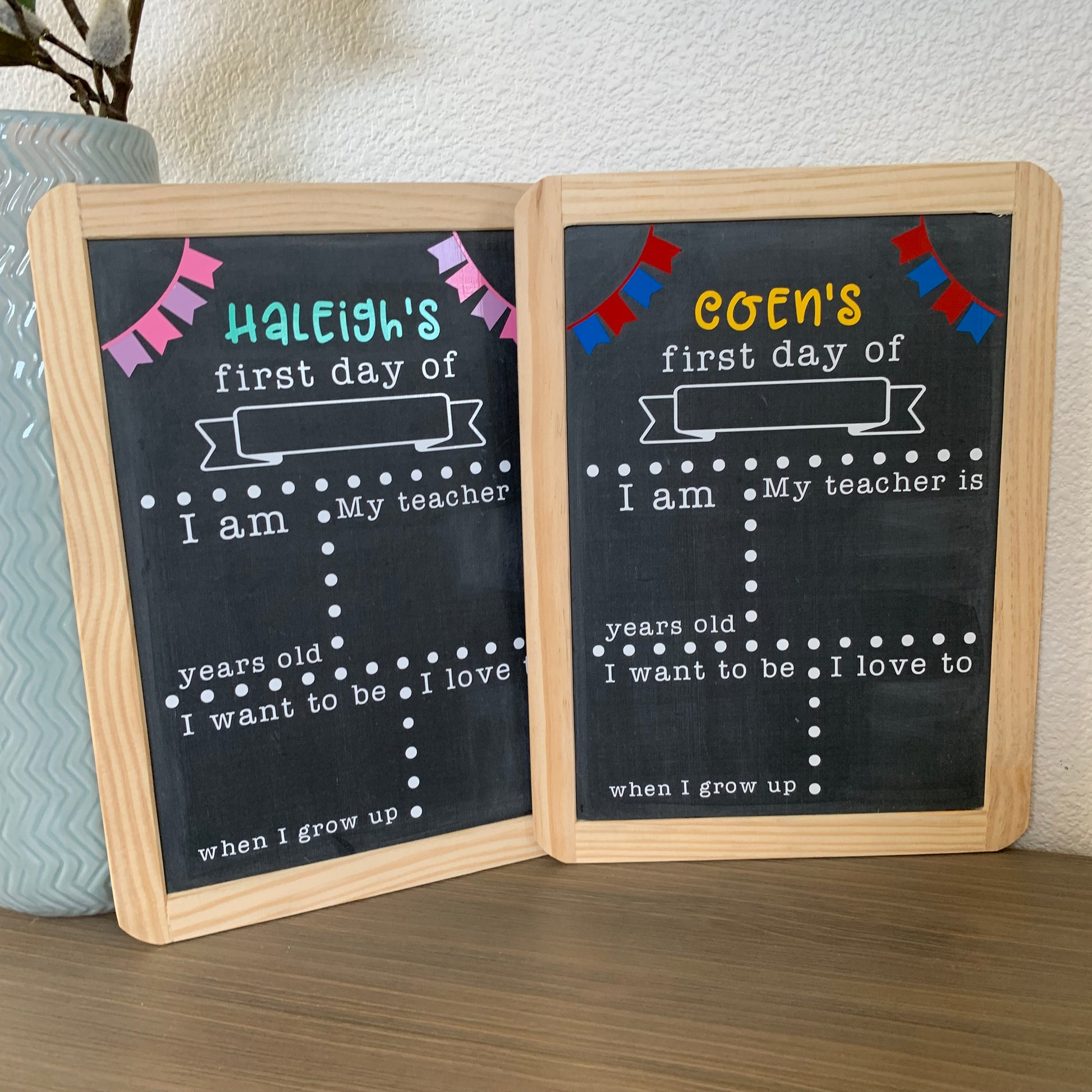 Capture the first day of school and last date of school with personalized school chalkboard sign.